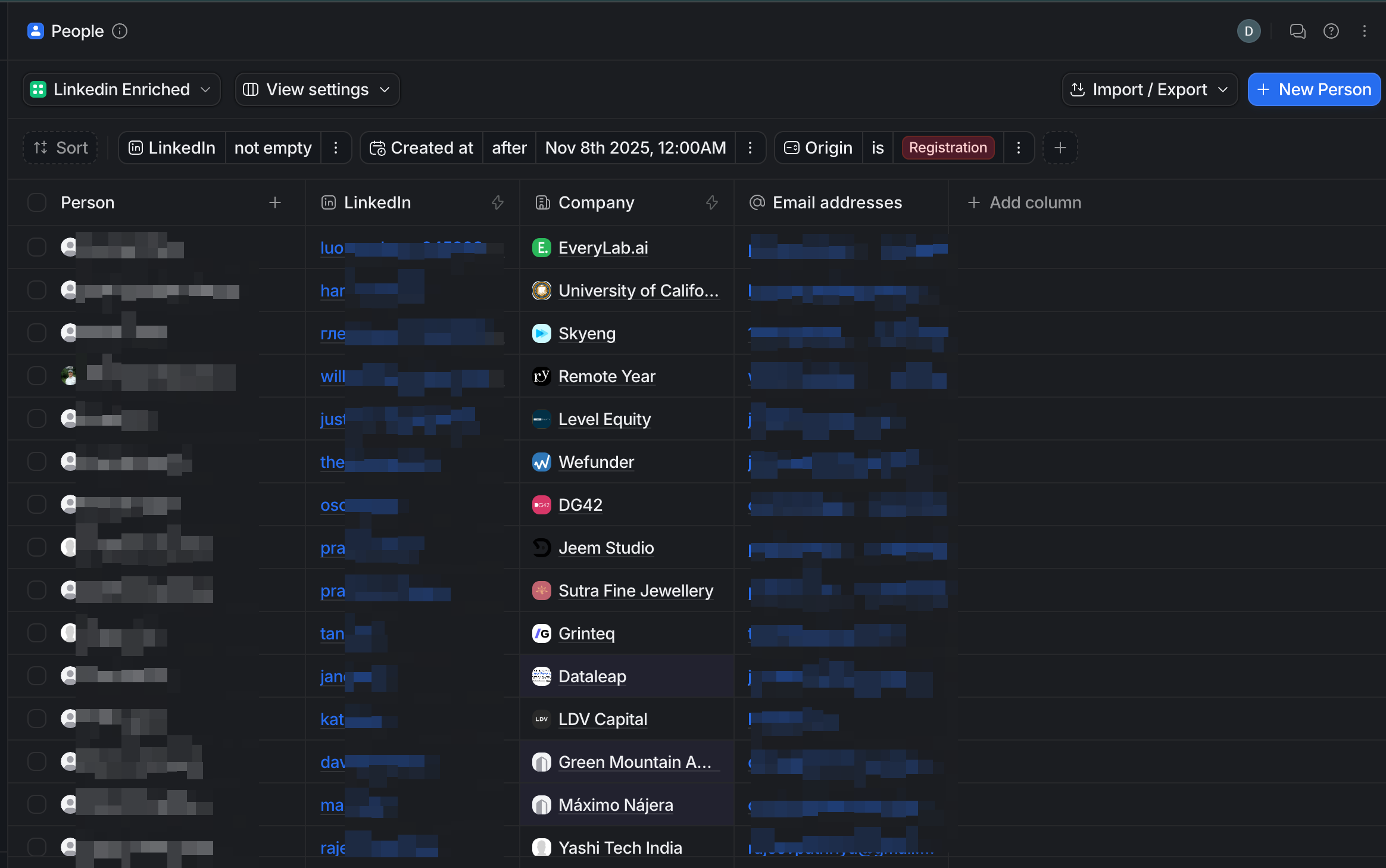 Once enrichment is done, we upsert into Attio with companies matched by domains and people matched by email addresses