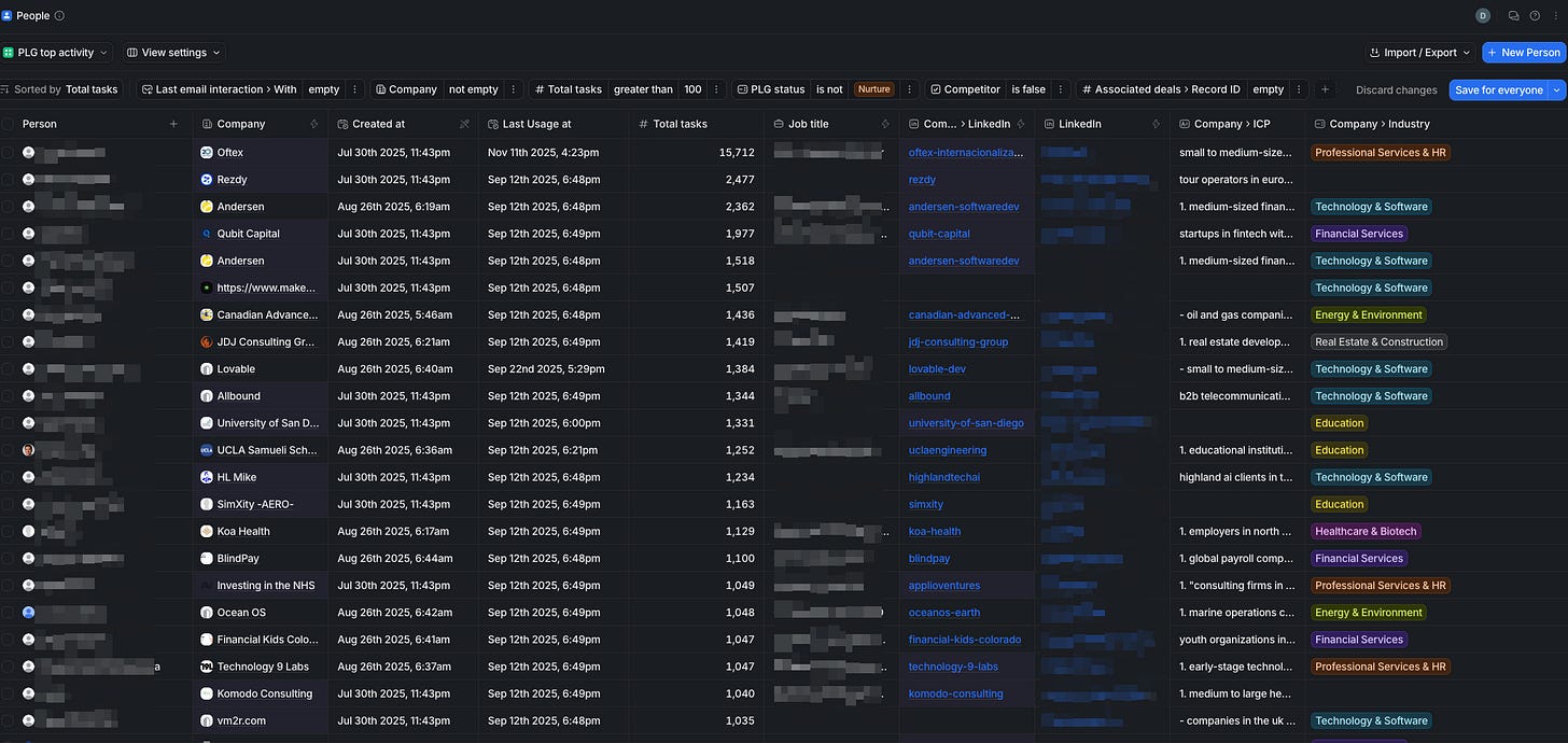 Attio is not as feature‑rich as HubSpot if you’re a large, complex sales org (territories, multi‑threading, etc.), but for an early‑stage PLG startup, it hits a very nice balance: